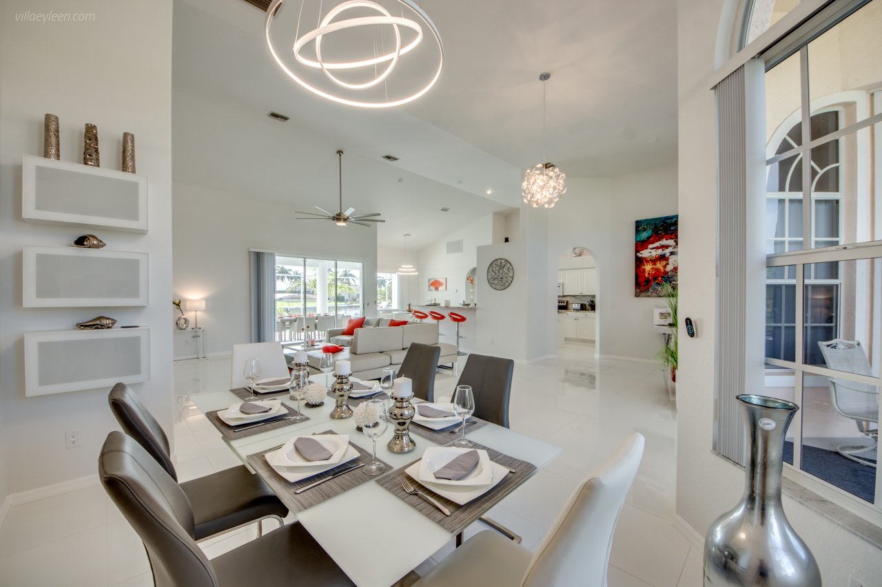 La privacidad, el silencio y la relajación están garantizados en Villa Eyleen, ubicada en uno de los canales más anchos de Cabo Coral. La residencia está ubicada en una zona muy tranquila en el suroeste de Cabo Coral, a solo una cuadra de Surfside Blvd, y a pocos metros del canal más alejado de los manglares. ¡Magníficas propiedades están por todas partes en este vecindario de Surfside!